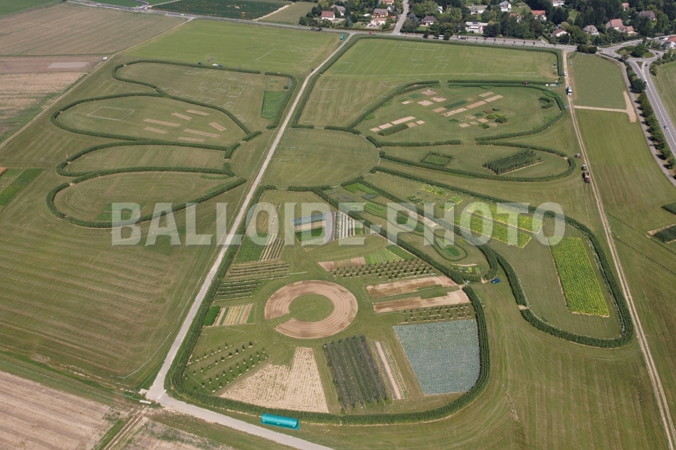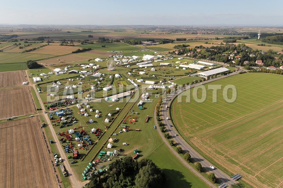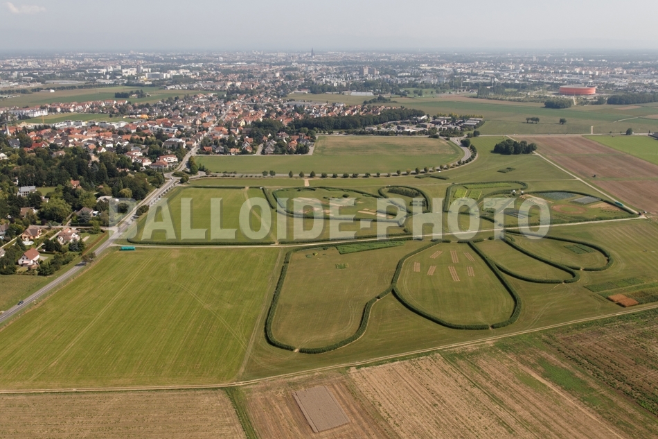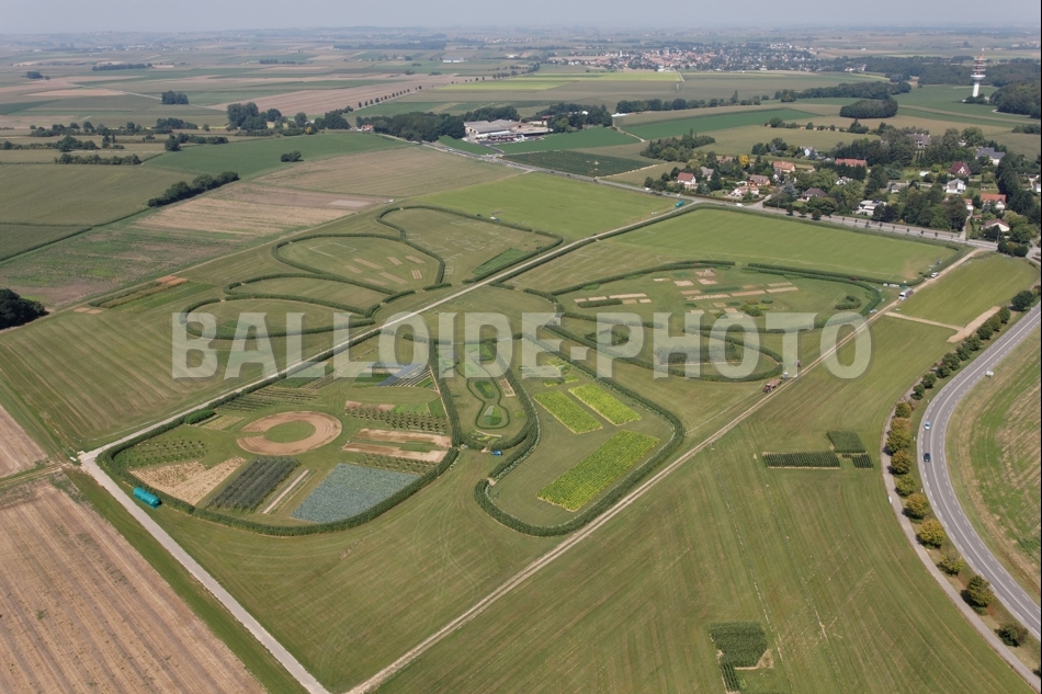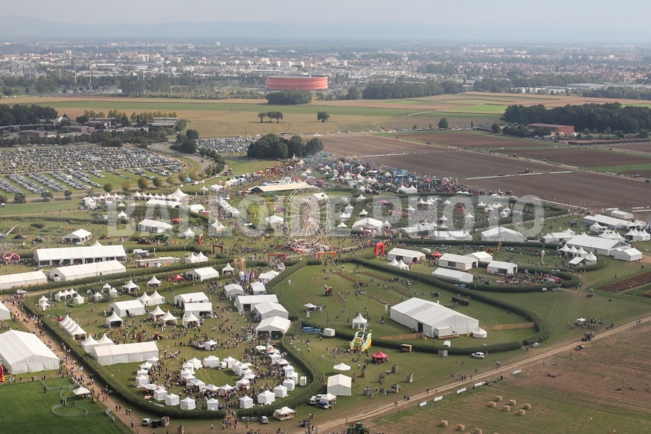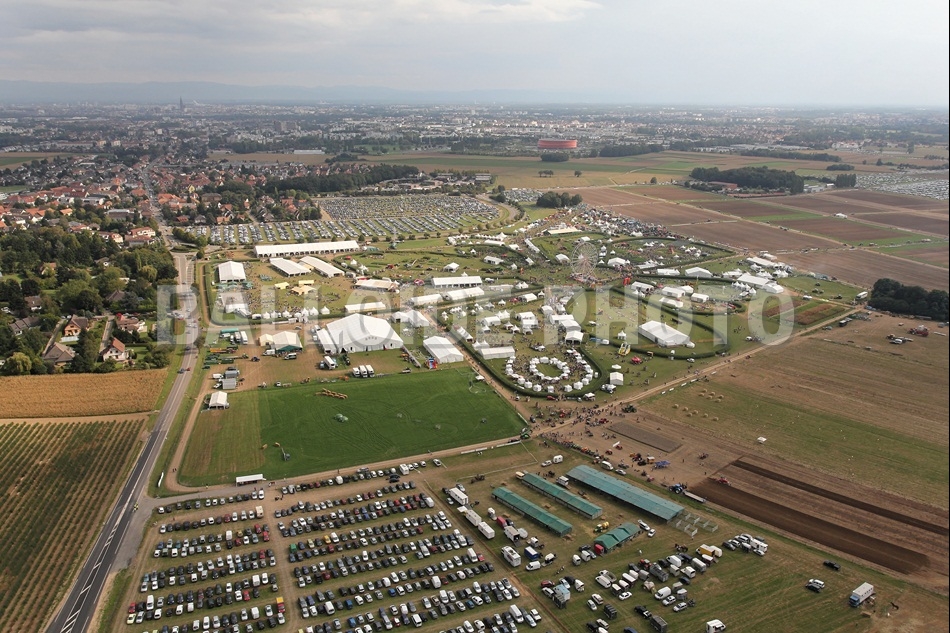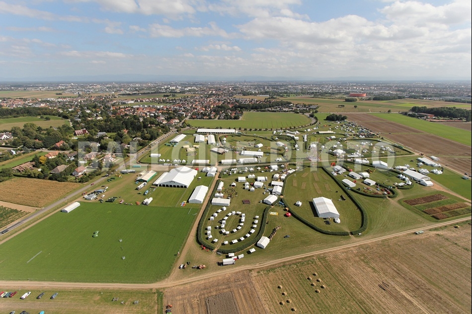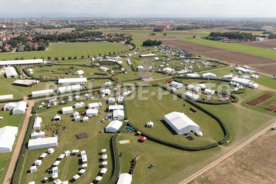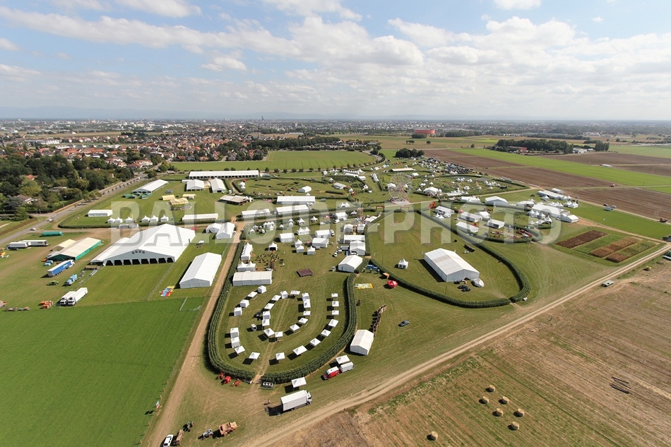 Les 16, 17 et 18 septembre a eu lieu à Oberhausbergen la manifestation des Terres à l'Envers organisée par les jeunes agriculteurs du Bas-Rhin. L'objectif de cet évenement était double: acceuillir les finales nationales et européenes de labour ainsi qu'un salon de l'agriculture en plein air. Les prises de vues aériennes nous permettent de découvrir le site d'exposition en forme de fleur matérialisée par des haies végétales. Cette présentation ludique offre l'opportunité aux jeunes agriculteurs de faire connaitre les produits locaux et de se rapprocher du public.
