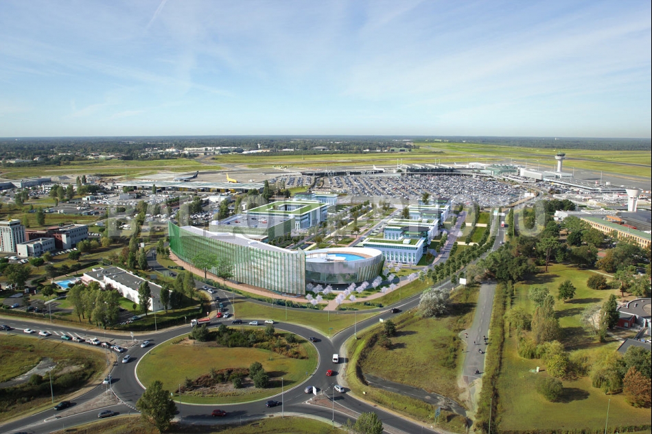 Ce projet a été imaginé par Archi concept associé aux paysagistes de Signes et pour le compte des promoteurs-constructeurs Thalium Promotion et Eiffage Immobilier. Axyz a inséré dans les photos aériennes produites par balloide -photo le projets du 45 ème parallèle.