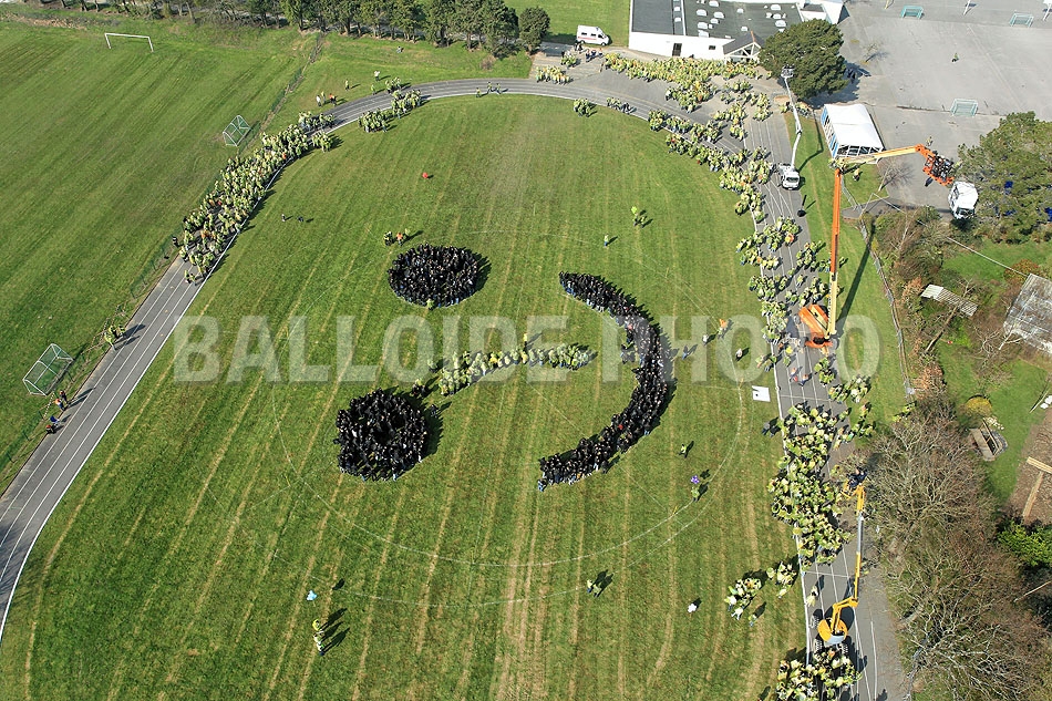 2.276 participants pour le nouveau record d'Europe du plus grand Smiley humain composé de lycéens et étudiants de l'ensemble scolaire St Joseph-La Salle de Lorient auxquels se sont jointes plusieurs centaines de membres d'associations du pays lorientais.