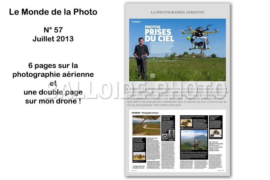 En effet, Le Monde de la Photo sortira son nouveau numéro (N°57) avec un très bon article dédié à la photographie aérienne et tous ses modes opératoires.